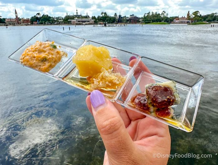 Wine & Wedge is a NEW booth that joined the EPCOT Food and Wine Festival this year, and it’s remained as part of the EPCOT Festival of the Holidays! It’s one of four new booths added to commemorate the Disney 100th Anniversary Celebration.