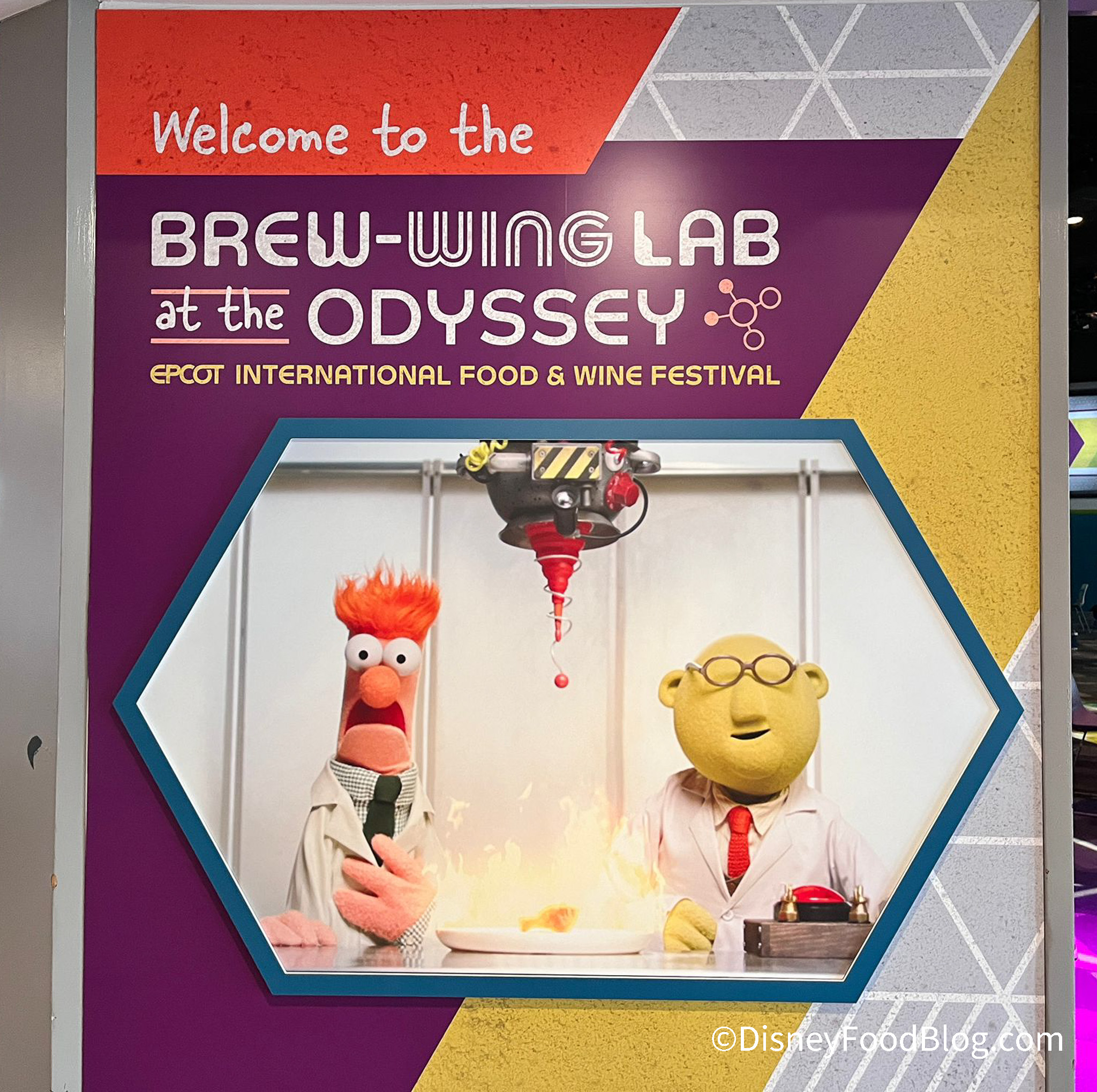 A NEW experience made its debut in 2023 at Brew-Wing at the Odyssey. At this indoor booth, Dr. Bunsen Honeydew and Beaker joined the festival (via video) as the taste-testers in residence, where they did some taste-testing the flavors of tomorrow and today! That’s right — Muppet Labs has come to EPCOT!