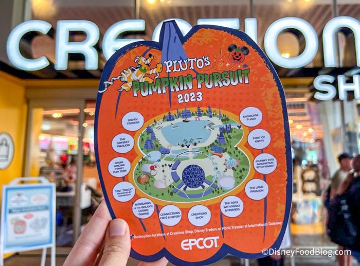 The pursuit works similar to Remy’s Scavenger Hunt, in that guests can purchase a game board and stickers at select merchandise locations (such as Creations Shop, Port of Entry, and World Traveler at the International Gateway).