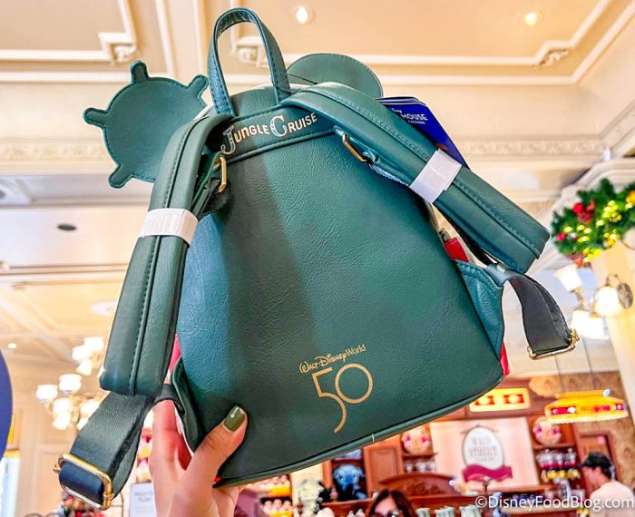 The back is dark green with the Walt Disney World 50th anniversary logo printed at the bottom. You can adjust the shoulder straps, too!