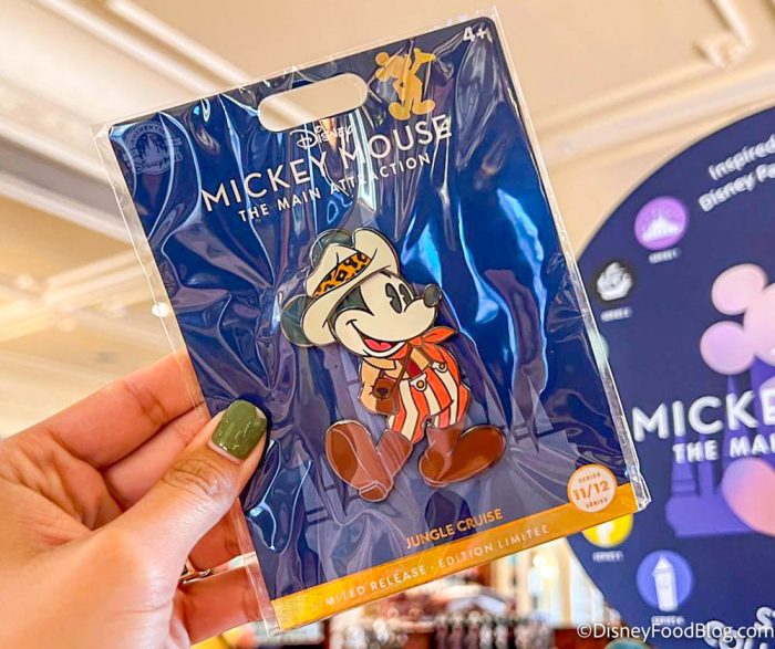 We spotted the matching Jungle Cruise Mickey pin, which looks just like a mini version of the plush.