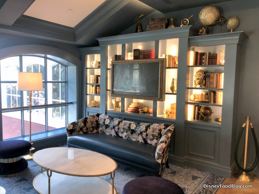 In terms of decor, look for subtle nods to the films, like the glowing bar with a gold chandelier that is reminiscent of Belle’s gown. You may also find the iconic Enchanted Rose, a Cogsworth-inspired clock, and a Mrs. Potts-inspired teapot.