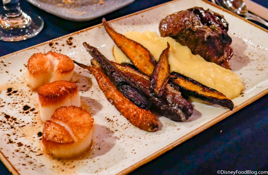 There are 3 different ways to experience Victoria & Albert’s. First, there is the main Dining Room. This space features 2 Chef’s Tasting Menus to pick from. These menus feature multiple courses all designed by the chef de cuisine. The menus start at $295 per guest, optional wine pairings start at $150 per guest, and zero-proof pairings start at $110 per guest.