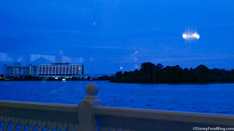 The restaurant is located in a circular building that sticks out a bit into the Seven Seas Lagoon, making it a great place to watch the Electrical Water Pageant and Magic Kingdom fireworks.