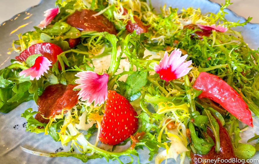 As we discussed above, this is a signature dish you can usually find at 1900 Park Fare, but we’ve had it at the Grand Floridian Cafe too! It’s a cold, refreshing, soup with the slightest level of sweetness and fresh whipped cream. Don’t miss out on this iconic dish (if it’s available, that is!).