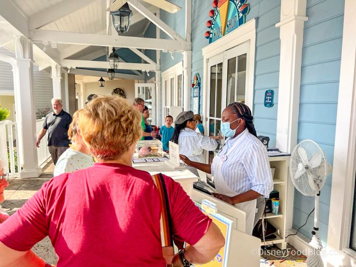 When we walked up, we noticed that desks and kiosks had been set up just outside the restaurant entrance, near the Beaches & Cream To Go Window! It looked like this was where the restaurant was taking and serving orders instead of their typical table service indoors. Guests were being instructed to order at the register and would then pick up their orders at the window.