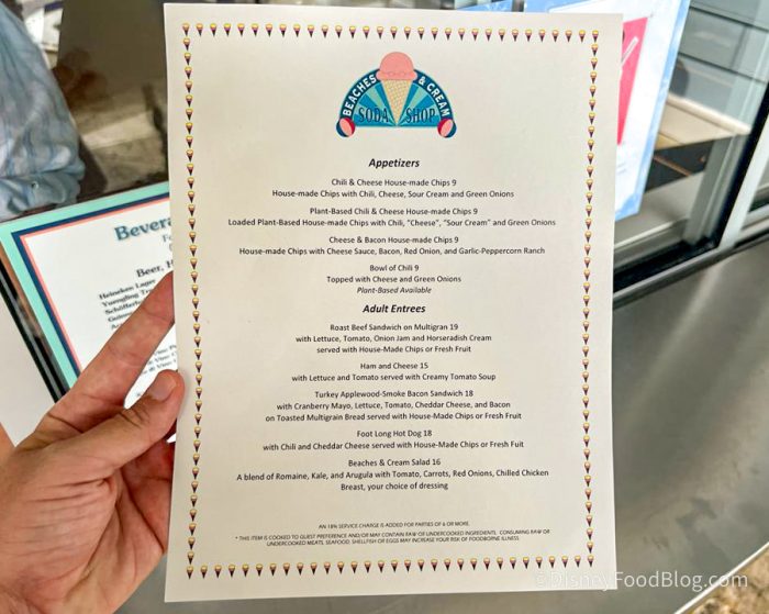 Cast Members and guests were unharmed, and Beaches & Cream was able to reopen today! We stopped by to see what service was like and if there were any updates to the menu.