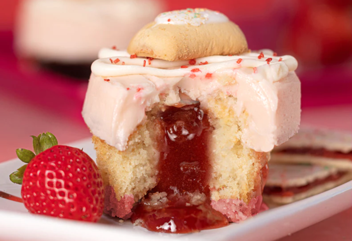 The first flavor is Pop Tart, which is available from January 1st-8th — that’s only THIS week! It’s inspired by the strawberry version of the classic breakfast treat, so it has a strawberry filling. It’s also lined with a pink sugar cookie crust and topped with strawberry frosting.