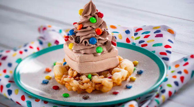 - Mocha Funnel Cake: Mini Funnel Cake with cappuccino ice cream topped with chocolate whipped cream and M&M’S chocolate candies