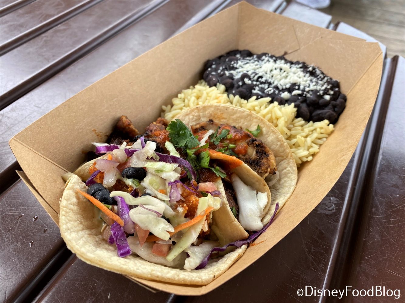 La Cantina de San Angel — Over at EPCOT’s Mexico, the taco trio — which consists of barbacoa, camaron, and pollo tacos — is easy to share, especially because you can split the serving of rice and beans it comes with for $14.99.