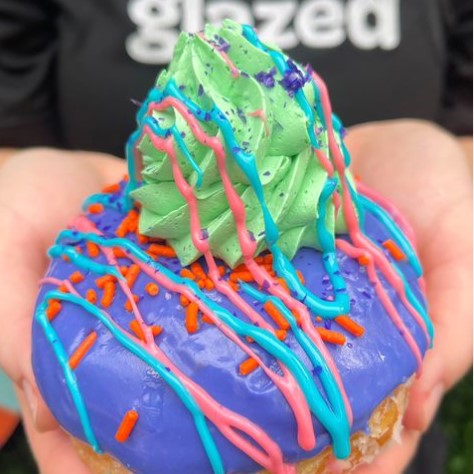 This classic glazed donut is topped with a generous amount of vanilla icing in rad purple, green, blue, and pink. It’s finished off with some bright orange sprinkles to seal the deal. Whether you’re a competitor or just looking for a sweet treat for yourself this weekend, you can purchase this donut from Everglazed in Disney Springs. Act fast, though! This special Race Day Donut’s last day in town is January 8th.