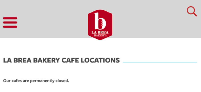 But, it’s not just this location — according to La Brea’s website, all their Bakery Cafe locations have permanently closed.