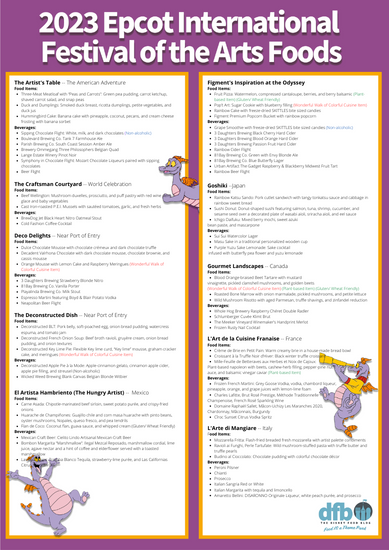 Our FREE 2023 EPCOT International Festival of the Arts Printable is HERE! This is a full list of the food and beverages being offered in EPCOT for the festival, so you can keep track of everything you want to try.
