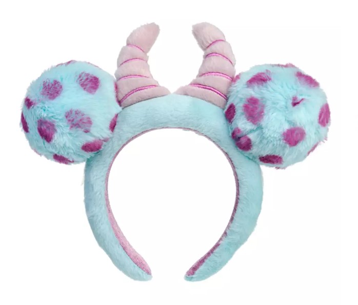 The ears are designed to look like the fur of Sulley (from Pixar’s Monster’s, Inc.) — they’re covered in a light blue fabric with purple spots all over the puffy ears. In the center is a pair of horns so you and Sulley can match!