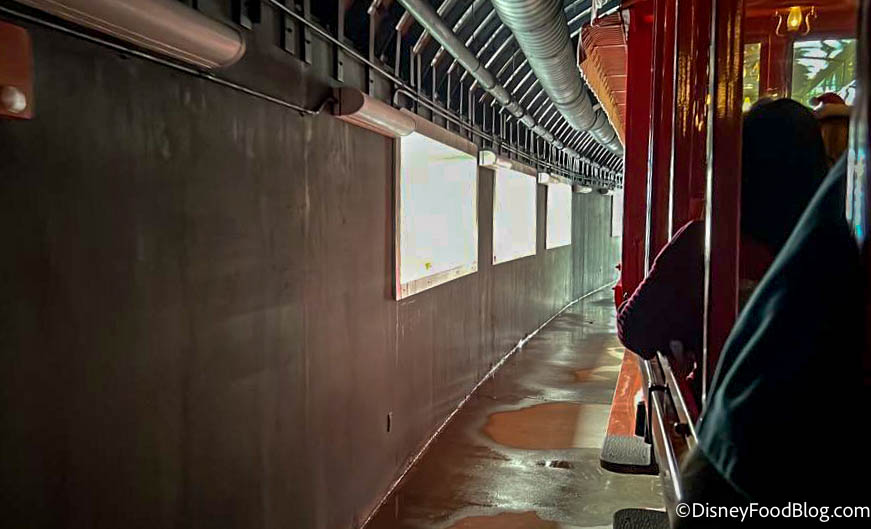 When the Walt Disney World Railroad re-opened we were able to see TRON construction from a whole different perspective! Here you can see how the train enters the tunnel that runs through the TRON site…