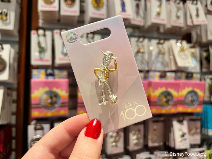 We found some other pins over at the Frontier Trading Post. This Disney100 pin features none other than Stitch and is $14.99 like the others at the Emporium.