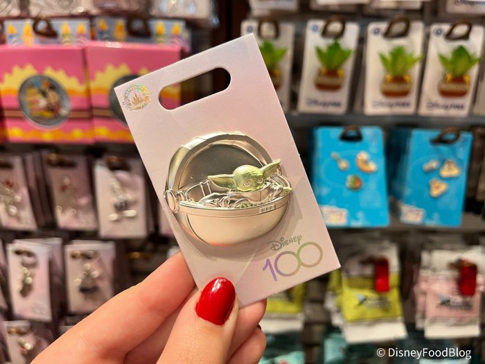 Along with these, we found a ton of new pins too! They have been released as part of the Disney100 merchandise line. First up, we have Grogu looking as cute as ever!