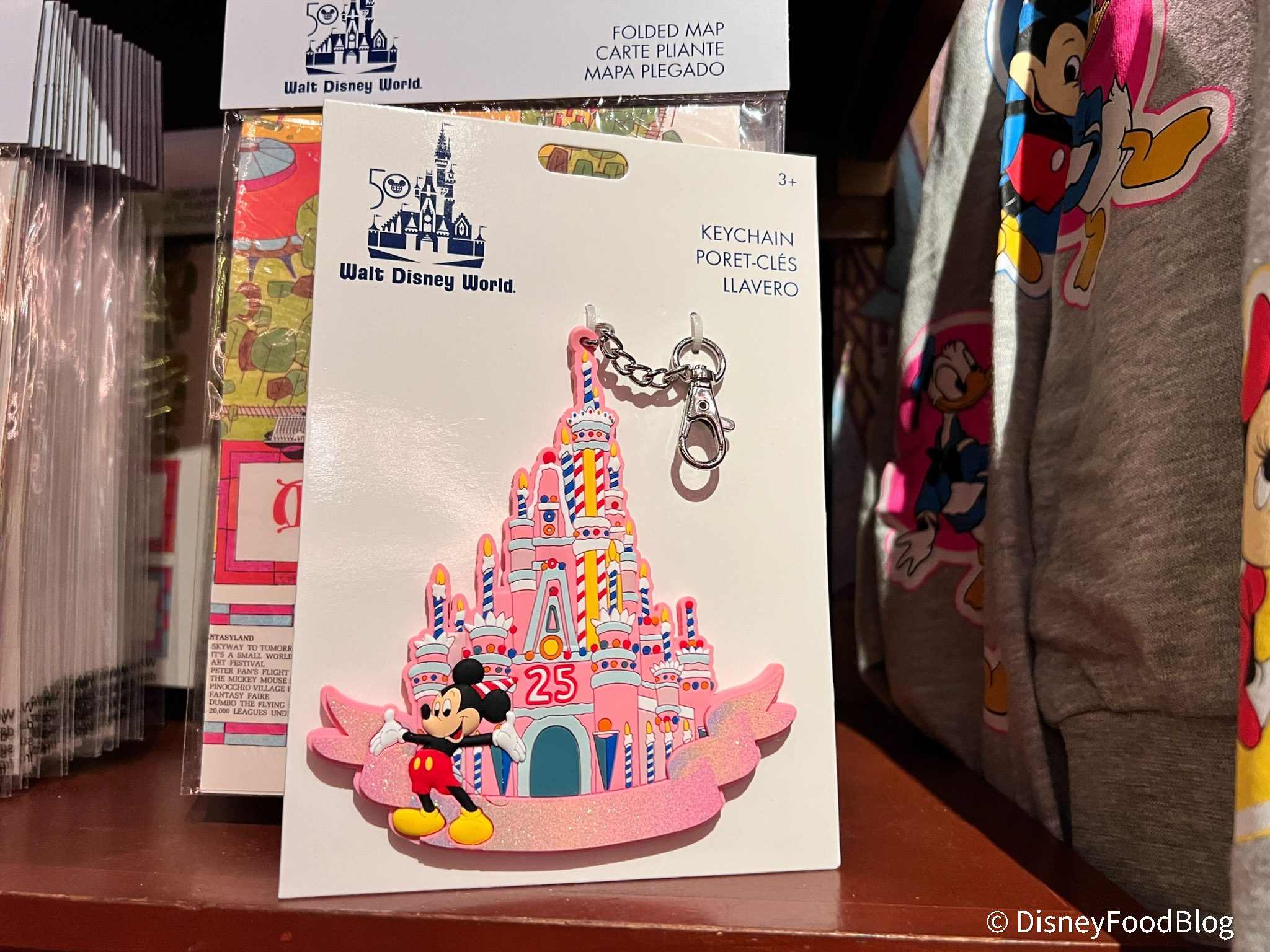 Going even further back, Disney also released this keychain featuring the iconic 25th anniversary birthday cake-themed Cinderella Castle! You can snag this keychain for $14.99.