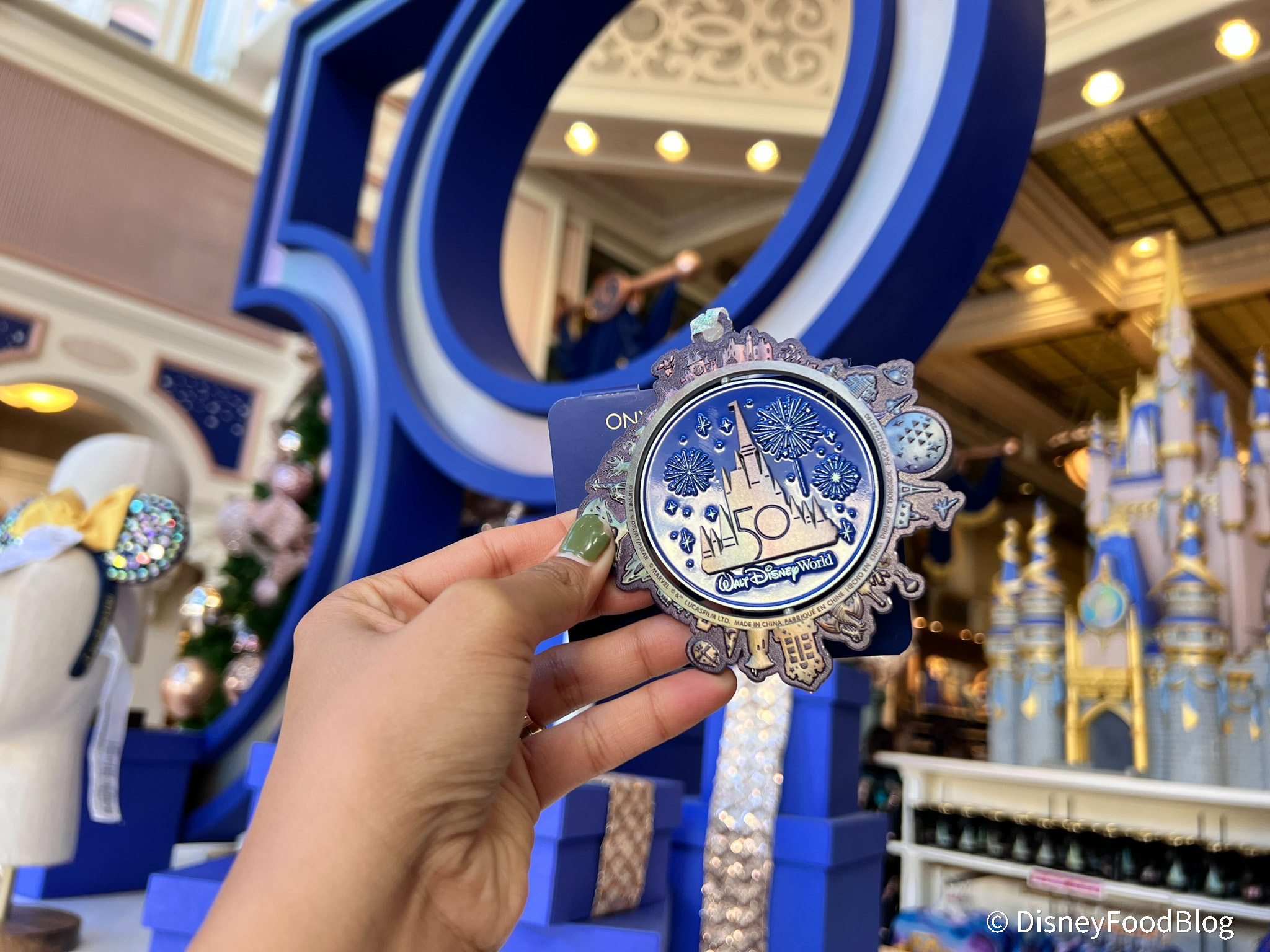 The 50th anniversary is wrapping up this spring, and in anticipation, Disney has released some new 50th merch. We found this ornament for $24.99 in the Emporium. The front features the 50th logo on Cinderella Castle.