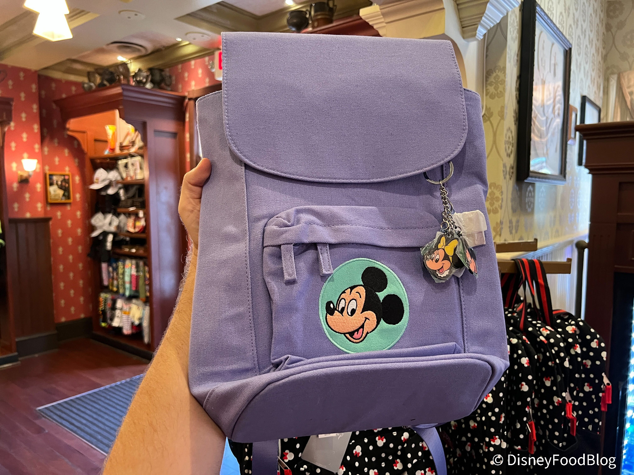 Need something to carry your park finds? Check out this Mickey Mouse backpack! It has a fun knapsack shape and comes in this lavender color. Get one for your next trip for $49.99.