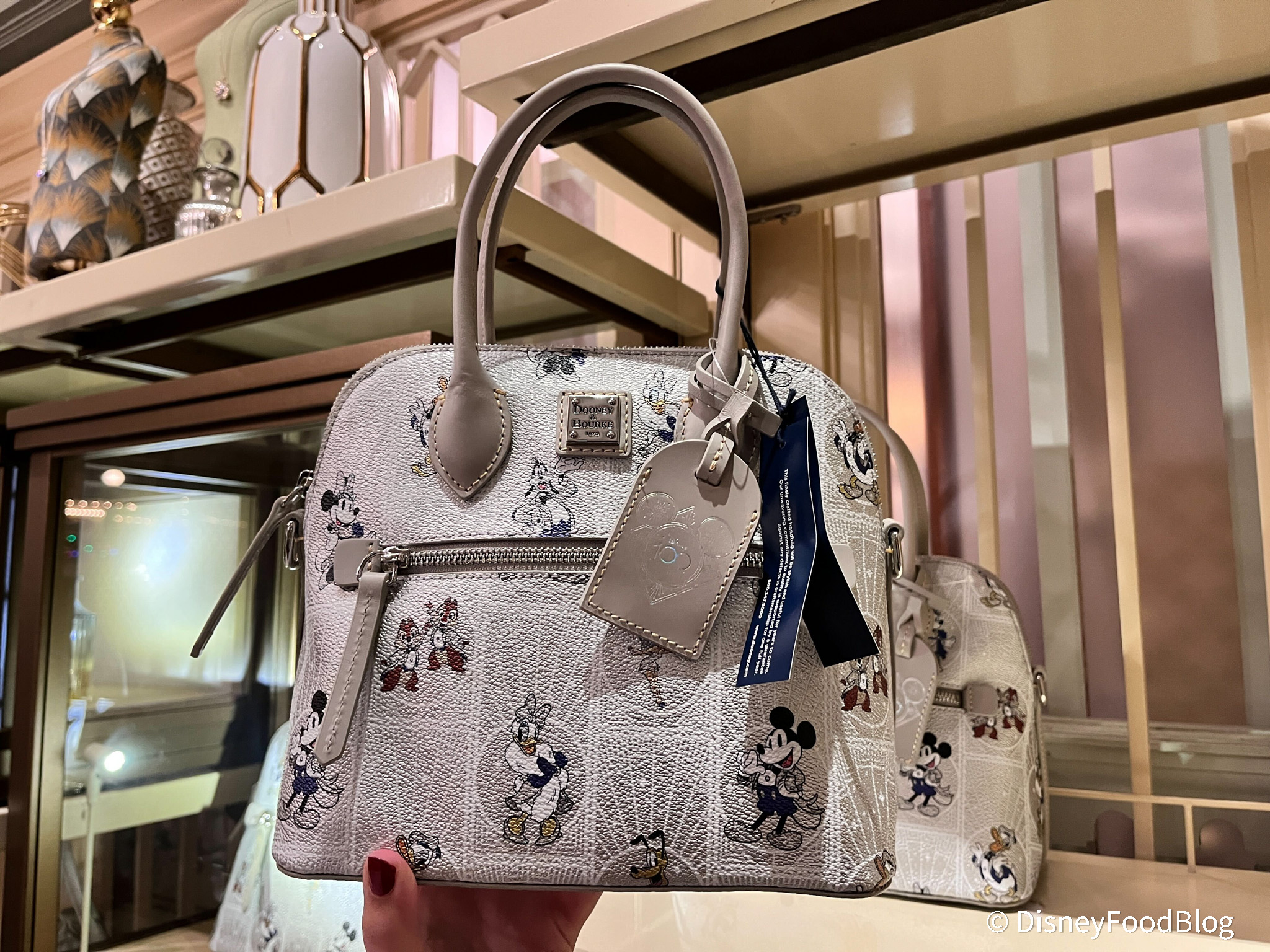 Dooney also released a new Disney100 Satchel with an art deco print in platinum featuring classic characters.