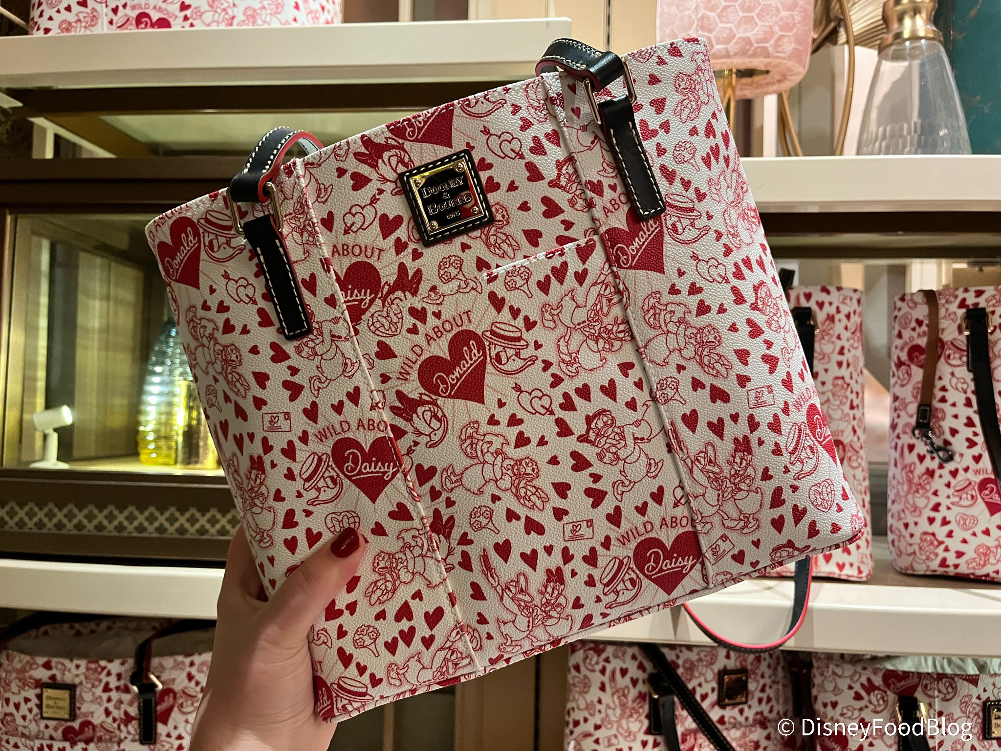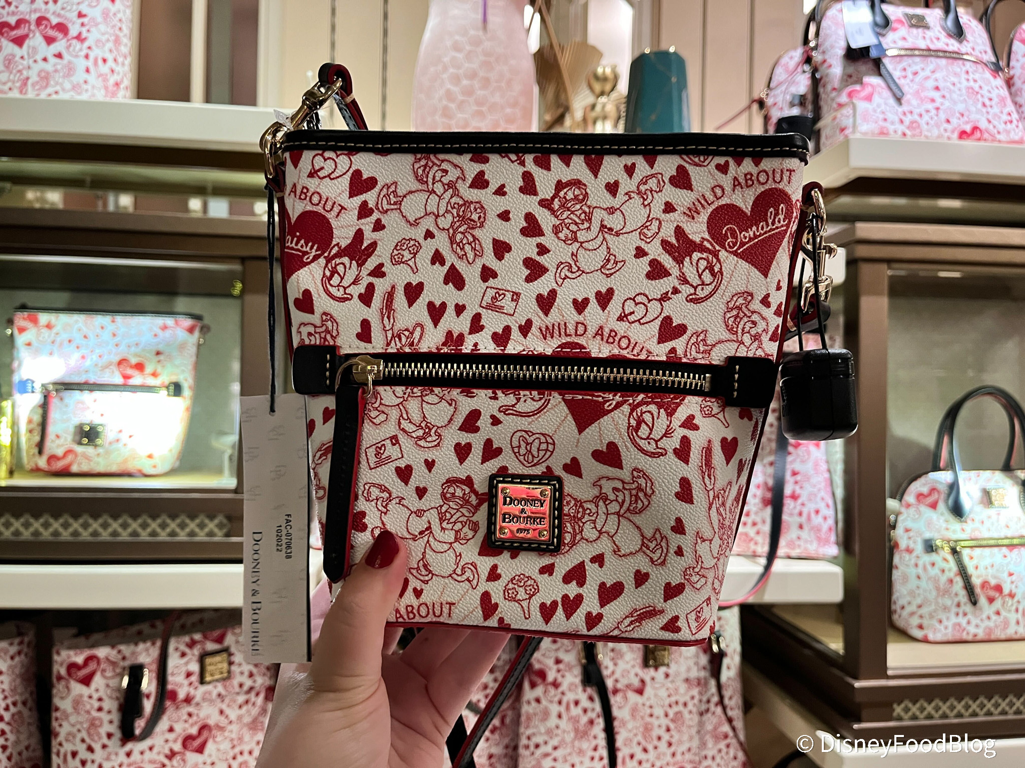 Their latest Valentine’s Day line has arrived in store! Each bag features the same white and red print featuring Daisy and Donald Duck. There’s the satchel bag for $298 …