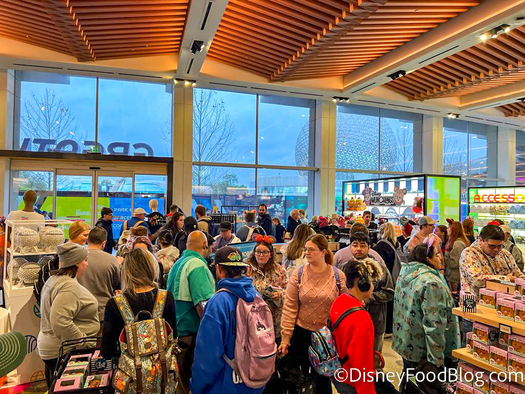 While crowds can impact your general experience, keep in mind that they can also lead to longer lines at the food booths, merchandise kiosks, and rides. Just check out the crowds inside Creations Shop first thing in the morning!