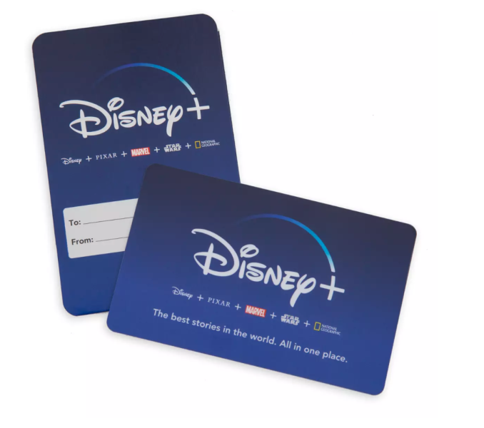 Finally, we have one more item to share, and it doesn’t really fit into any of the categories that we mentioned, but it would make an amazing gift! You can now buy Disney+ gift cards on shopDisney.