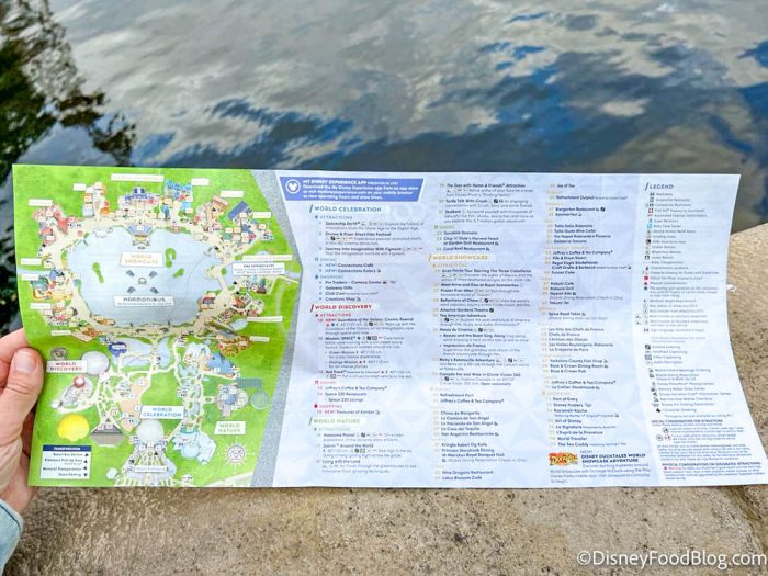 EPCOT has a brand new park map, and it could indicate that BIG changes are on the way. The outside of the map shows a child strolling through the park with 50th Anniversary designs on the sides (remember the celebration ends in March of this year!).
