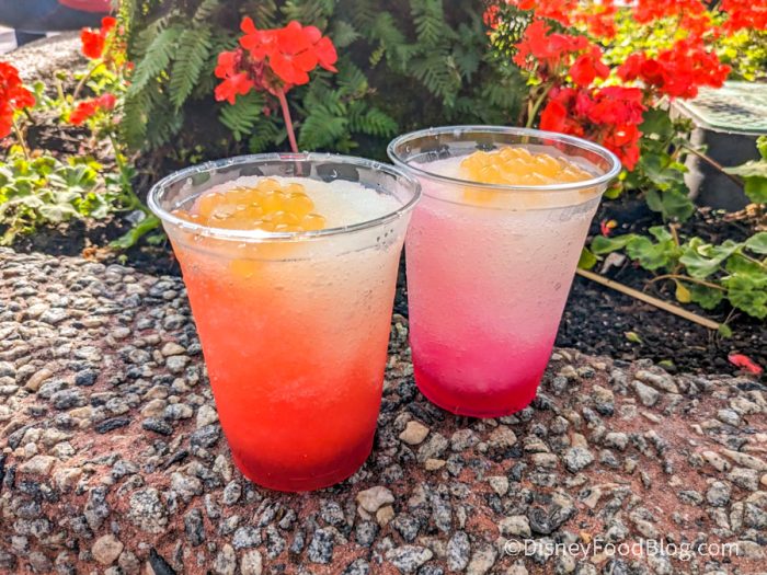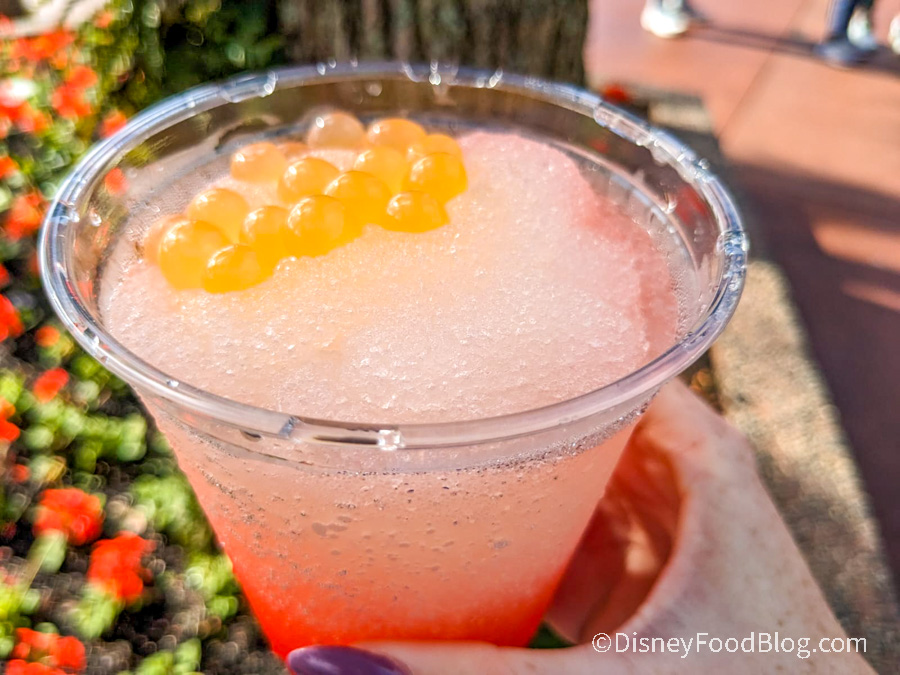 Annual Passholders can enjoy an extra special treat: at any Joffrey’s location in EPCOT, you can order their Frozen Little Spark. This has the same frozen base as the others, but it’s a cocktail with black raspberry syrup, mango popping boba pearls, and a splash of Grey Goose.