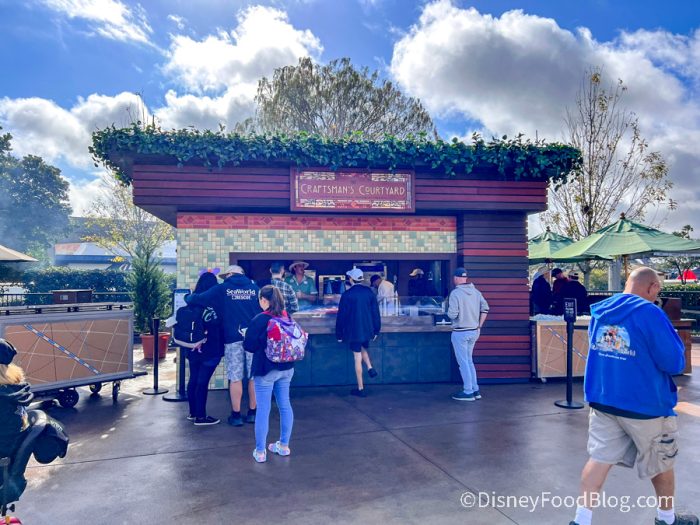 Overall, The Craftman’s Courtyard has a little bit of everything! The beef wellington is a DELICIOUS pick for those looking for some meat, the mussels are a more unique experience that could really challenge your definition of theme park food, and you could grab a new beer and (essentially) a coffee Old Fashioned! It’s a booth that’ll give you a taste of slightly more elevated dining in a theme park.