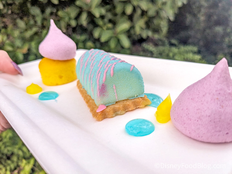 In terms of presentation, this really is a beauty! The colors are so bright and vibrant and the presentation is really fun — you’ll want to snap a photo of this one for sure. But when it comes to flavors, it wasn’t our favorite. The mousse has an interesting texture that reminded us of fake marshmallows.