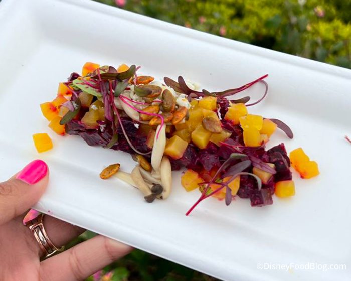 When we had the dish in 2022, it was, unfortunately, not our favorite. But this year, things went a bit better! First, the dish is beautiful — so it gets points there. And in terms of taste, we felt like the flavors blended together really well. The seeds added some spice and there was a bit of sweetness too. It’s unique and not one we’d rush to order again, but if you love beets, you may want to give it a try!
