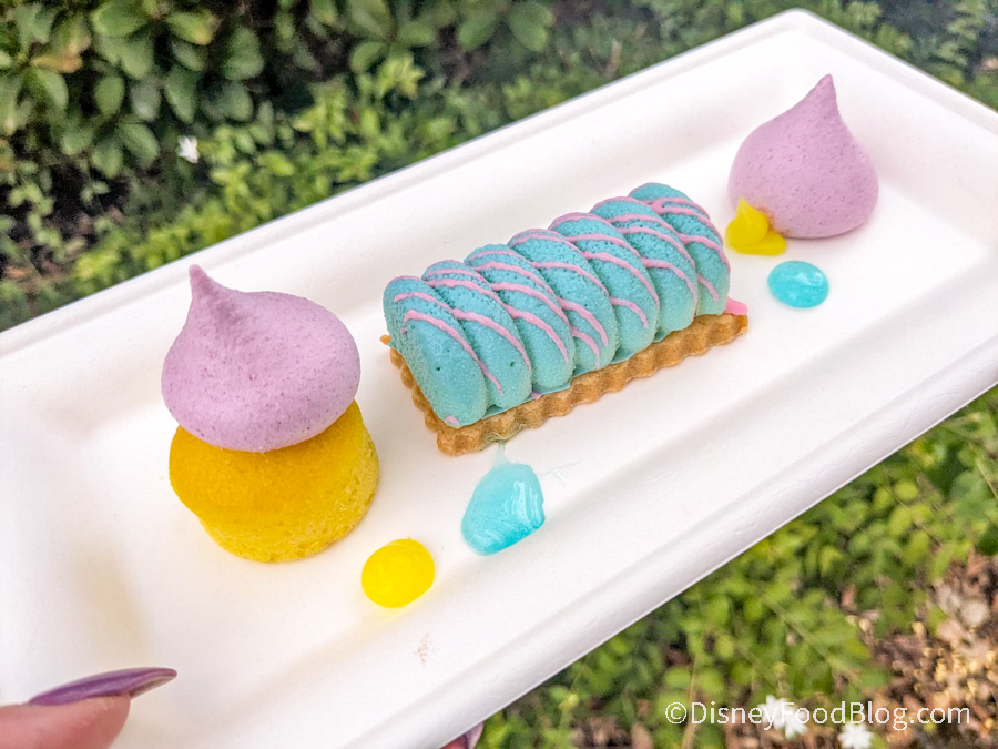 Though we’ve generally enjoyed this in the past, it was VERY dense this year and definitely had a STRONG almond flavor. It wasn’t quite moist and wasn’t quite dry — it was just somewhere in the middle with all of that denseness. The biggest note here is how strong that almond flavor is. If you don’t love almonds, heed our advice and pick something else on the Wonderful Walk of Colorful Cuisine to try!
