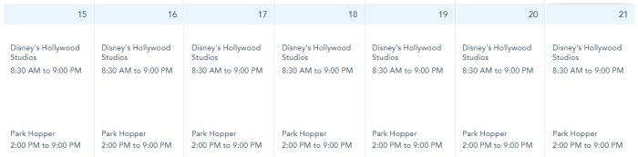 Disney’s Hollywood Studios is open from 8:30AM-9PM on January 15th-21st.