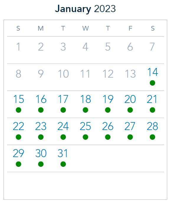 Now let’s take a look at park pass availability for the week.
