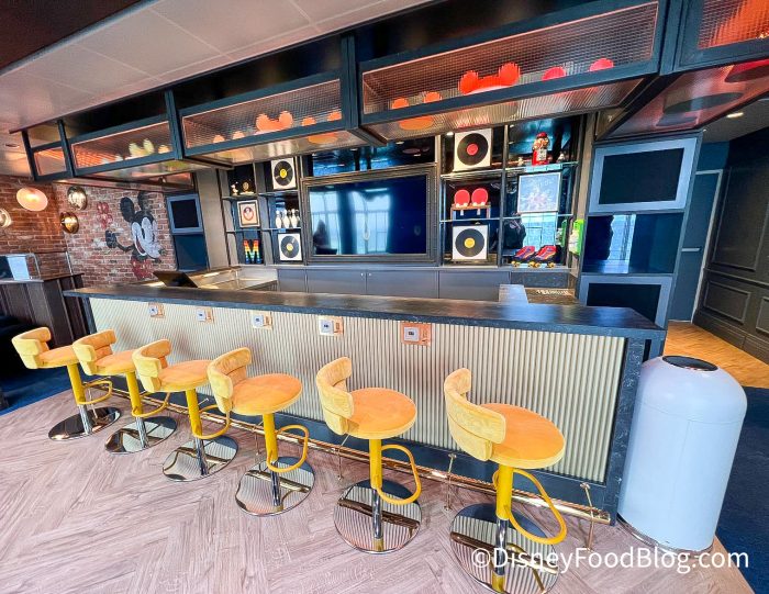 There are several other dining options on the ship as well, like quick service spots, as well as bars and lounges. For quick service spots, you can check out Sweet on You, which has all kinds of sweet treats, Senses Juice Bar, which is a juice bar near the spa, and Flo’s Café, which is actually three counter-service restaurants in one — Luigi’s Pizza, Tow Mater’s Grill, and Fillmore’s Favorites. They serve up things like pizza slices, hamburgers, chicken, salad, and more.