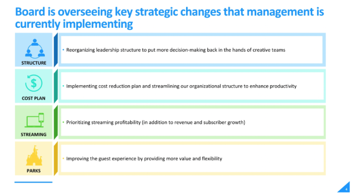 When it comes to key changes coming to Disney, the SEC filing notes that the Board is working on key strategic changes that are being implemented by management. Those changes include reorganizing some of the structure of the Company to give decision-making back to creative teams (something Iger indicated he would do when he returned as CEO), putting a “cost reduction plan” in place, “prioritizing streaming profitability,” and, at the Disney parks, improving the experience for guests by “providing more value and flexibility.”