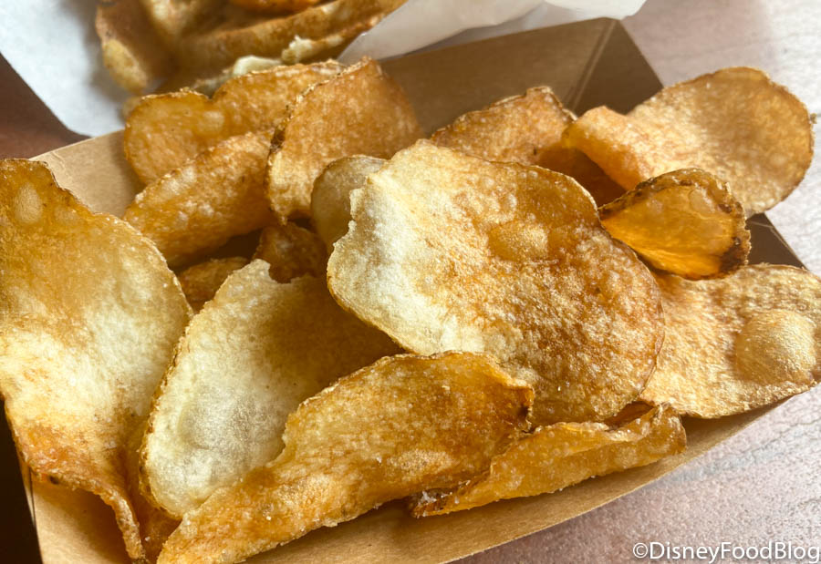 Yep, we’re going there…. the TURKEY LEG. Okay, okay, so maybe this hunk o’ meat isn’t all bad. In fact, the Turkey Leg has some DIE HARD fans. So, despite the fact that this snack is NOT our team’s favorite and tends to be voted off the island by our readers. You can snag jumbo Turkey Legs at a number of spots around Disney World. This time, we swung by Prince Eric’s Village Market in Magic Kingdom to pick up our $15.49 snack. And if the salty meat stick isn’t enough sodium for you, it also comes with a bag of chips (so make sure you get plenty of water to wash it all down)!