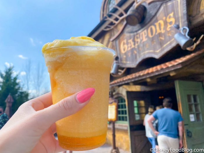 If you need something to wash down that colossal cinnamon roll, you need look no further. You can grab a nice, cold non-alcoholic brew, then try LeFou’s Brew! LeFou’s Brew is the signature beverage at Gaston’s Tavern.