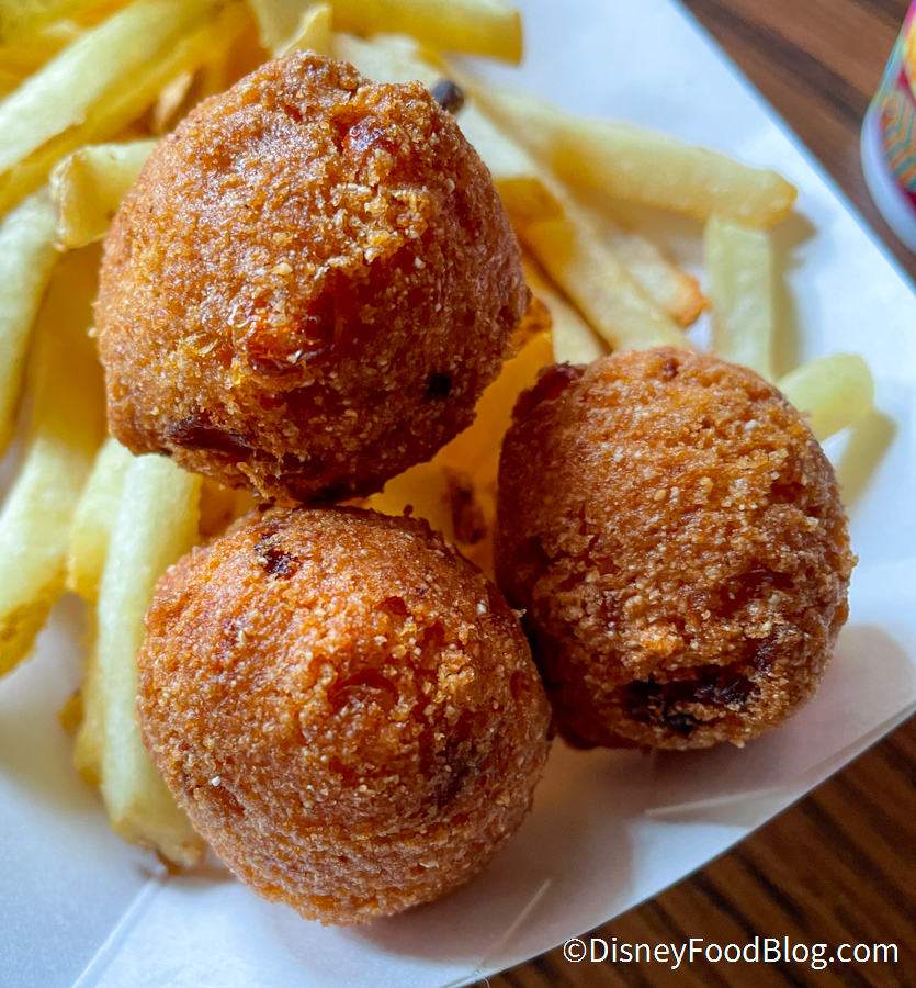 Okay, let’s talk about a tasty Magic Kingdom exclusive that’s less than $5! We’re talking about the Hushpuppies at Columbia Harbour House in Liberty Square.