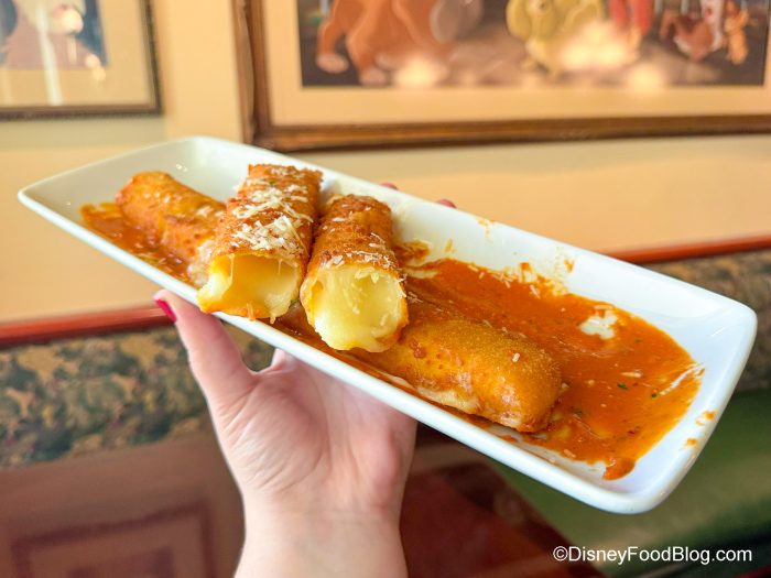Ok, so you’ll need an Advanced Dining Reservation for this snack, but it’s well worth it! Head over to Tony’s Town Square Restaurant in Magic Kingdom for their Foot-Long Mozzarella Sticks.