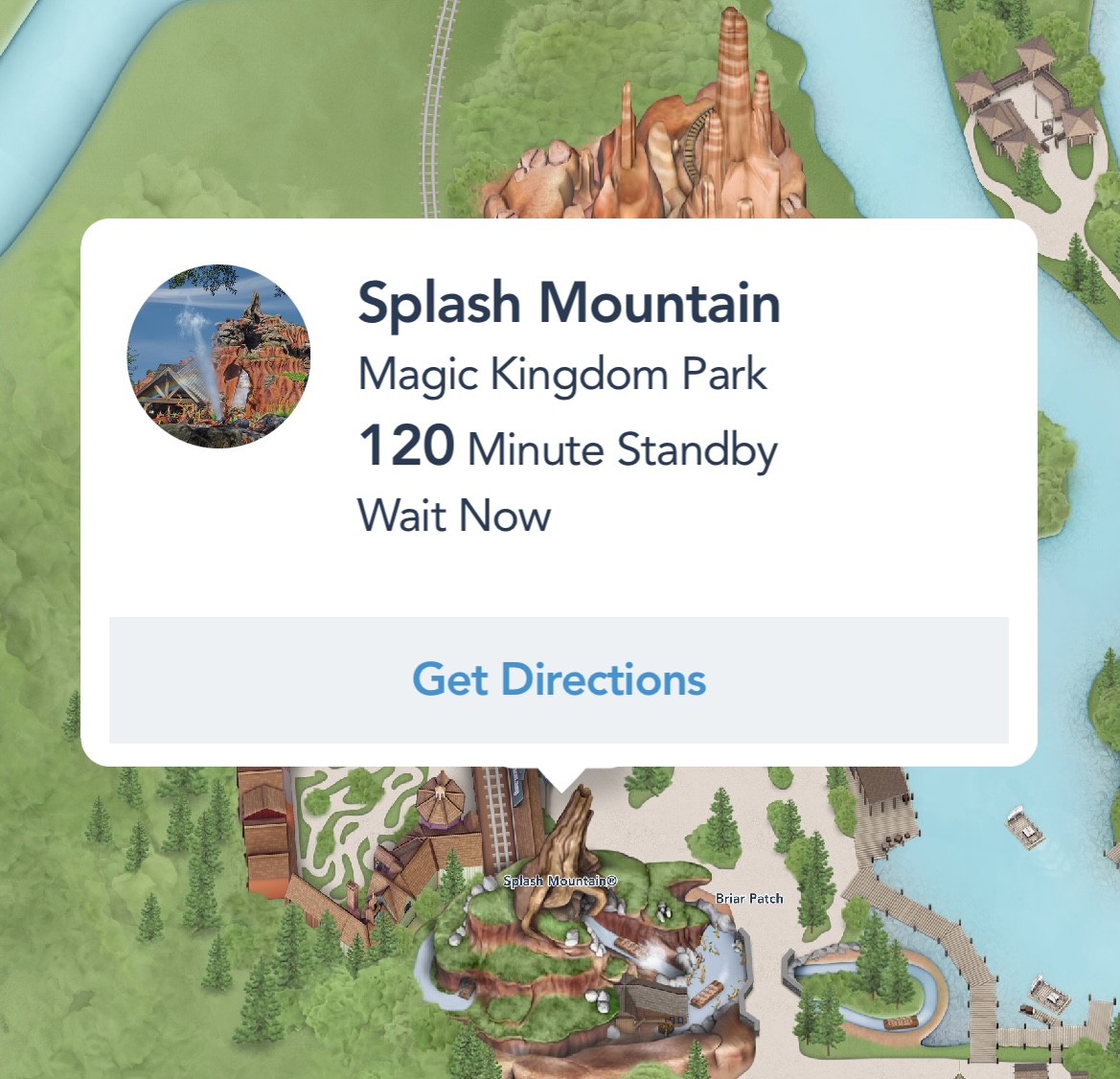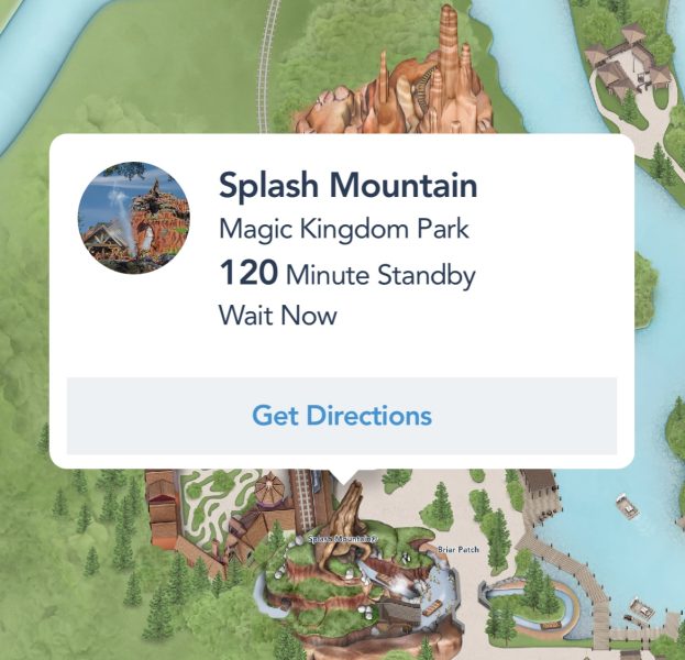 Yesterday, Splash Mountain had the highest wait time in the park at 120 minutes.