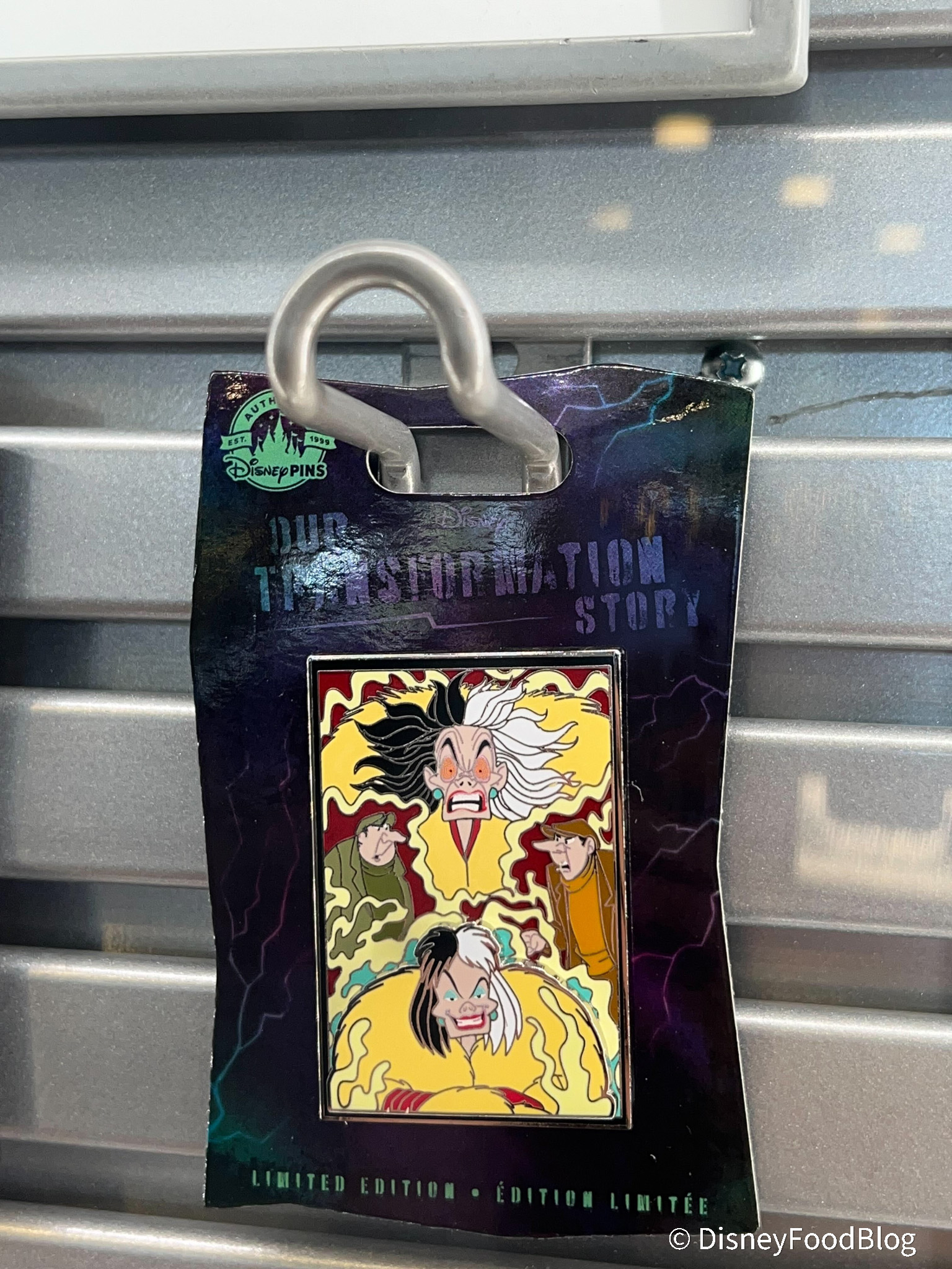 If you’re a fan of villains, check out these two pins! There’s a Cruella design for $17.99…