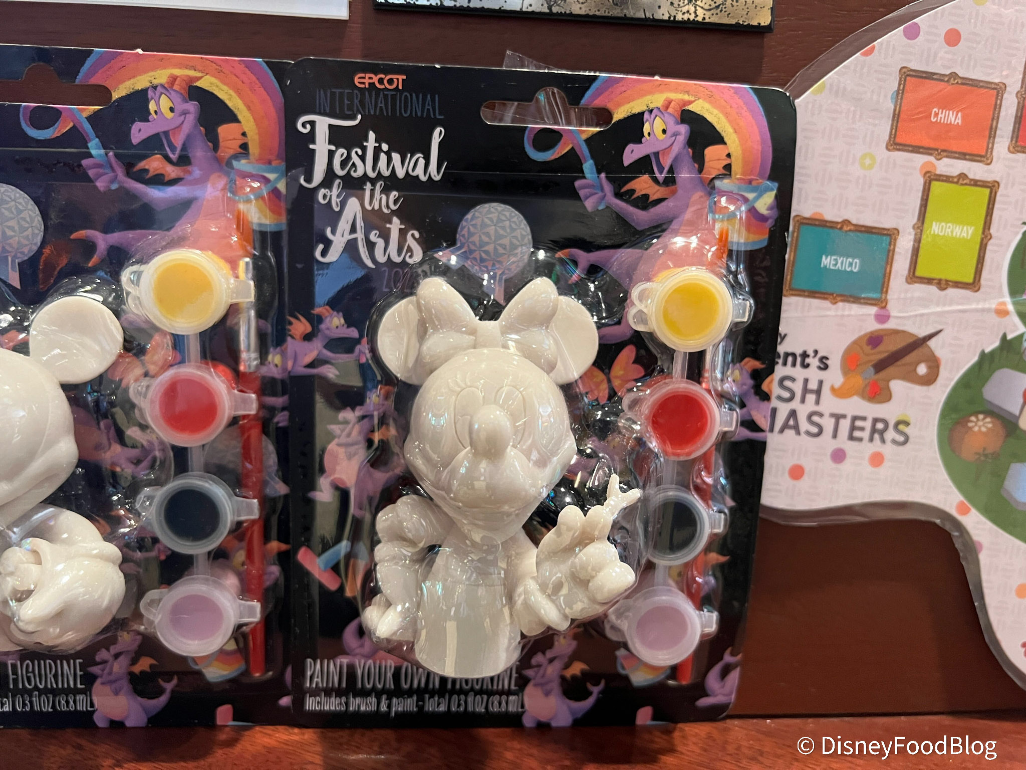 The Figment scavenger hunt is running right now during the Festival of the Arts. You can get your scavenger hunt board at World Traveler, which is also where you can collect your prize after finishing! This year you can pick from four different paint-your-own-figurine kits. There’s a Figment figurine…
