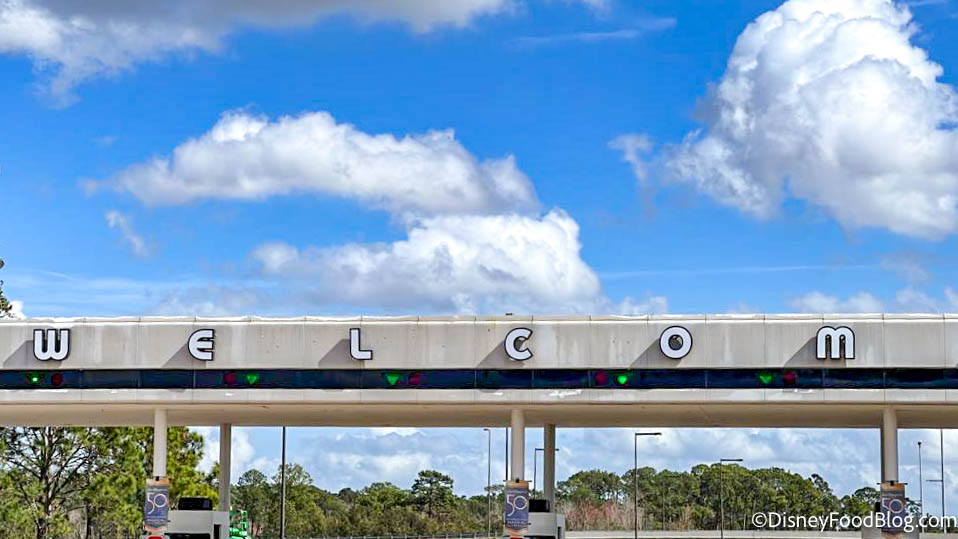 The entrance to the EPCOT parking lot is looking VERY different. Earlier, Disney revealed that a redesigned auto plaza marquee would soon be installed, and we got our first taste of the changes today.
