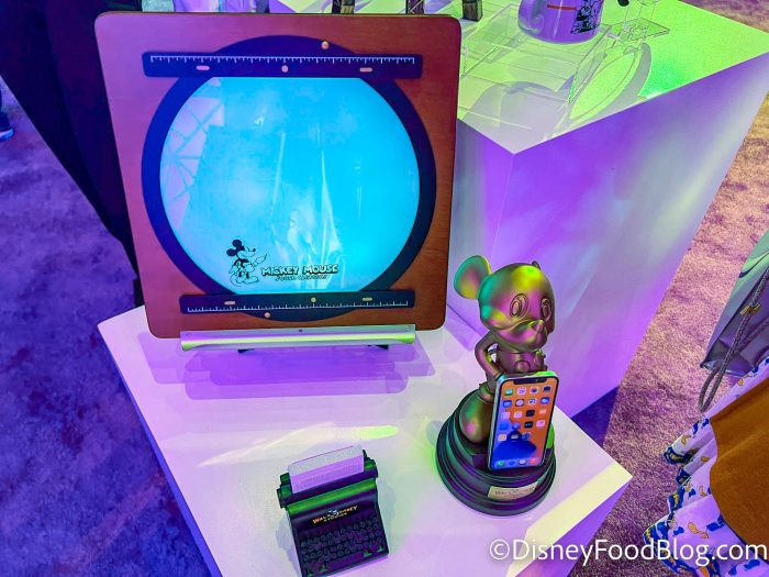 There are also some new home items, including a Mickey Mouse-themed wall sconce, a phone holder, and a tiny post-it note holder made to look like a typewriter. You could have the ultimate Disney-themed office with this collection!