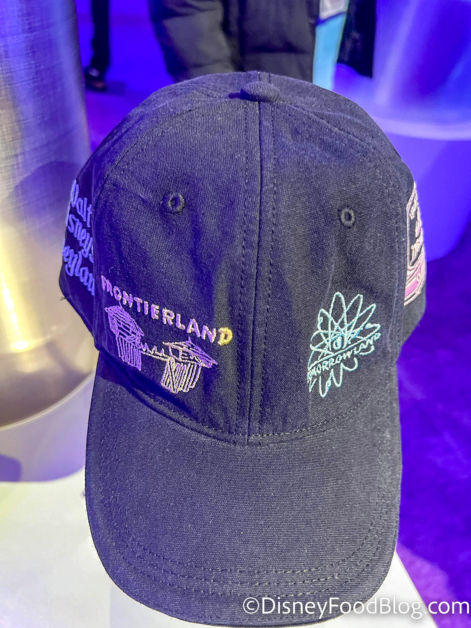 Want more accessories? You got it! This Disney100 Baseball Cap has nods to the various lands around Disneyland Park.