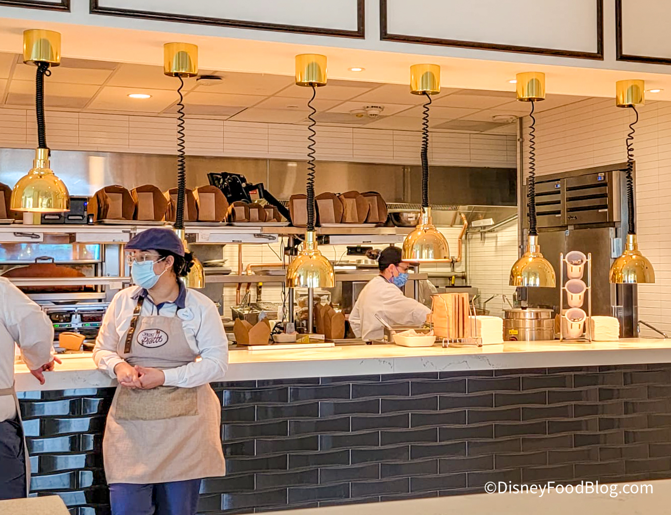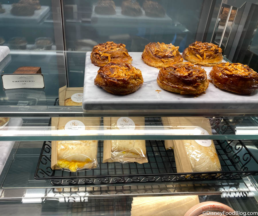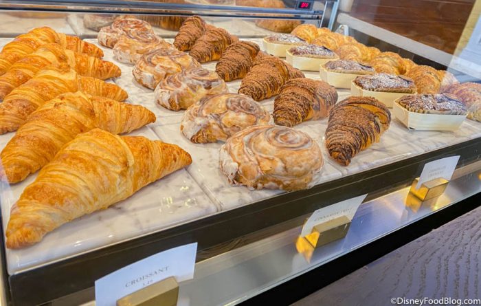 At breakfast time, you’ll find sandwiches (including a Croque Madame), entrees (like Mickey-shaped waffles or a frittata), sides, plant-based options, kids’ meals, baked goods (like muffins and croissants), desserts, snacks, and drinks (many of your standard picks along with Joffrey’s coffee and tea).