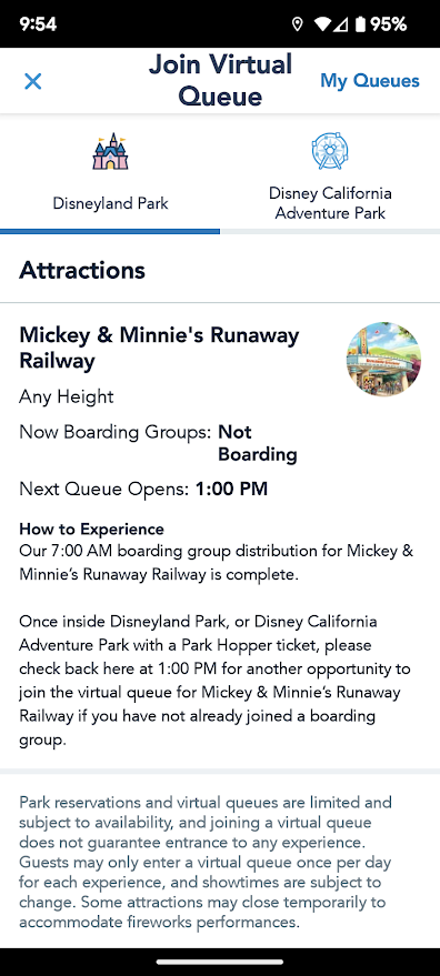 First up, you CAN ride Mickey & Minnie’s Runaway Railway for free, if you manage to get into the virtual queue. Guests can join the virtual queue through the Disneyland app at 7AM and 1PM daily.